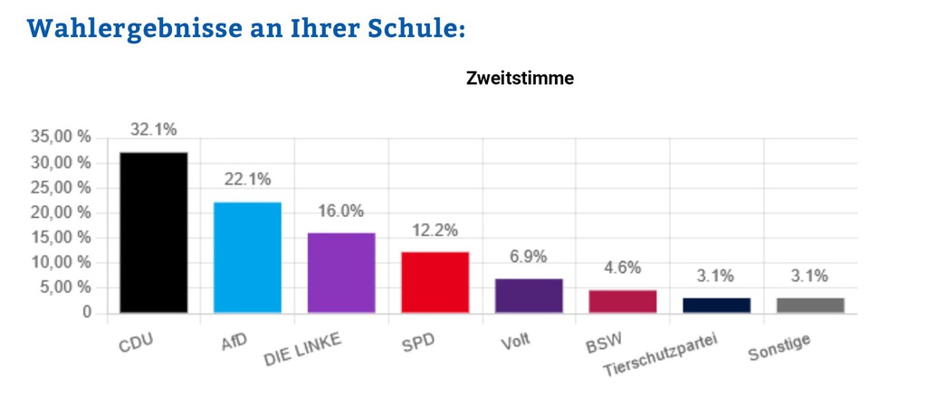 Die Schülerinnen und Schüler waren aufgerufen ihre Stimmen am 20.02.2025 im schuleigenen Wahllokal abzugeben. Die Wahlbeteiligung war mit über 79% erfreulich hoch.
