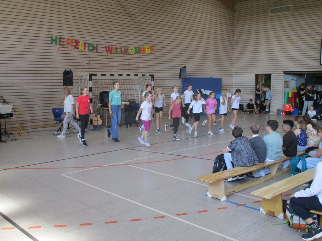 einer Begrüßung durch den Schulleiter, vor und nahmen zusammen mit den Klassen an