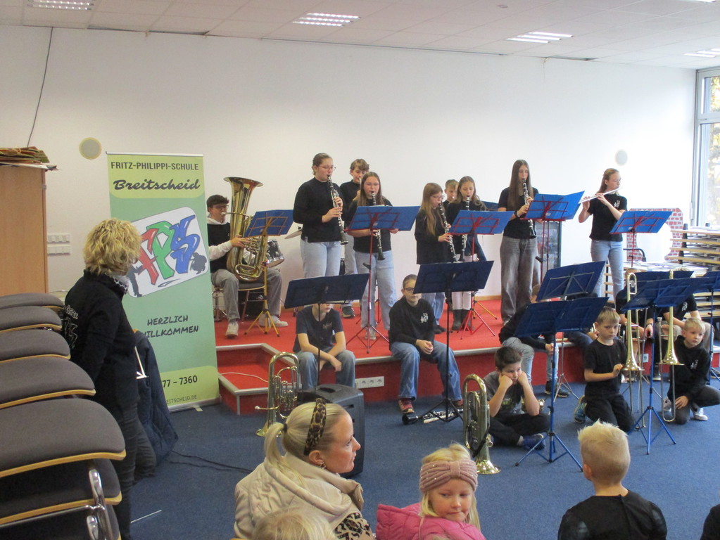 Mit einem gemeinsam ausgewählten Programm für die kommenden weihnachtlichen Auftritte beim Seniorennachmittag in Breitscheid, sowie Besuchen in Senioreneinrichtungen, Pausenkonzerten - und dem traditionellen Elternkonzert stieg eine gut vorbereitete Bläsercrew am frühen Nachmittag in die Elterntaxis.