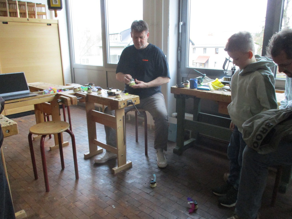 Zum Thema „Üben“ wurde am Abend gemeinsam eine Übescheibe gebastelt, an der man zukünftig mit einem Zeiger die vorher besprochenen Komponenten des erfolgreichen Übens wie Atmung, Ansatz, Haltung usw. einstellen kann.