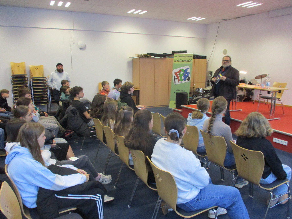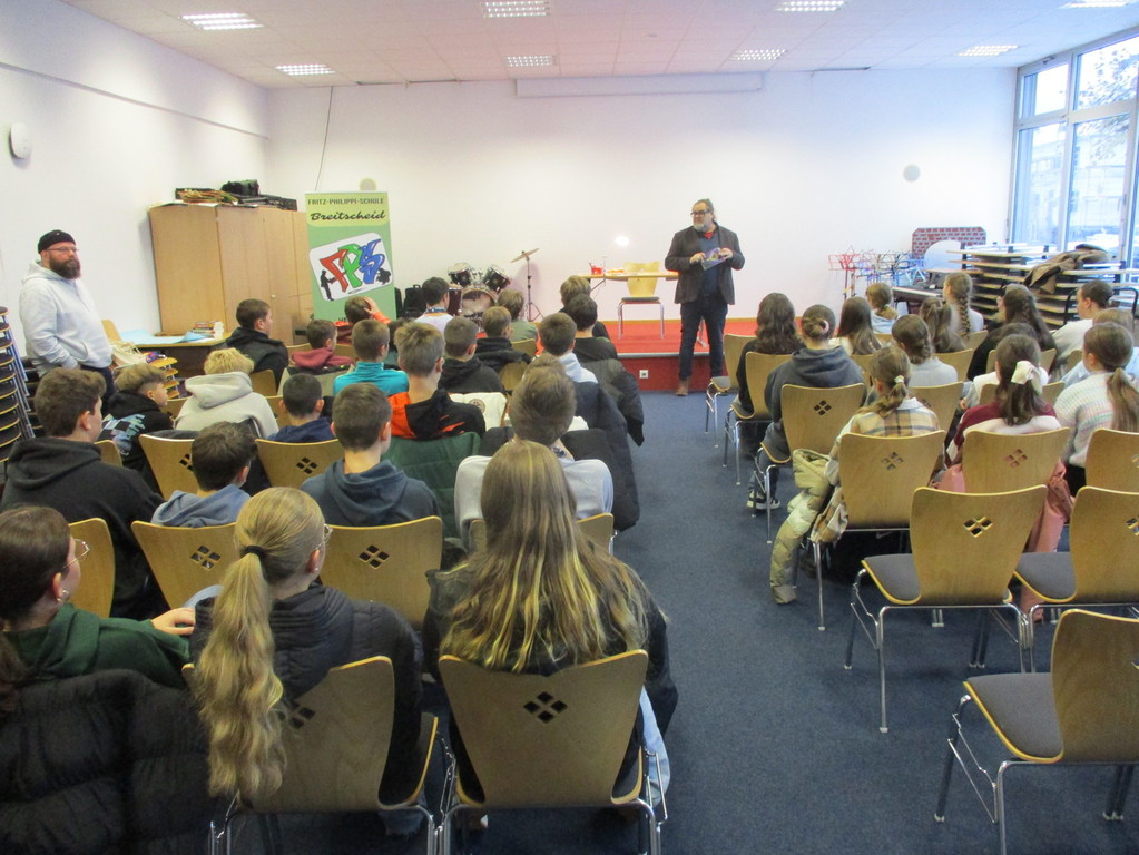 Im Rahmen der diesjährigen IMeNS-Lesereise durfte die Fritz-Philippi-Schule den bekannten Jugendbuchautor Christian Linker begrüßen. 45 Schülerinnen und Schüler der Jahrgangsstufe 7 nahmen an der besonderen Veranstaltung teil und erlebten eine spannende Begegnung mit dem Autor.