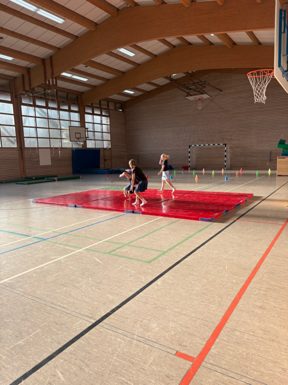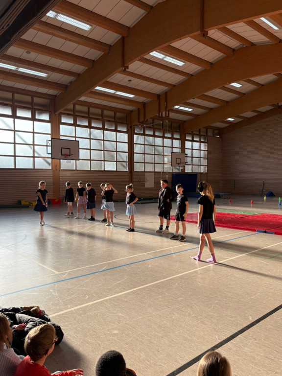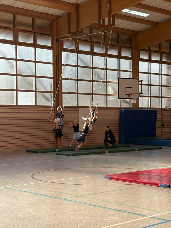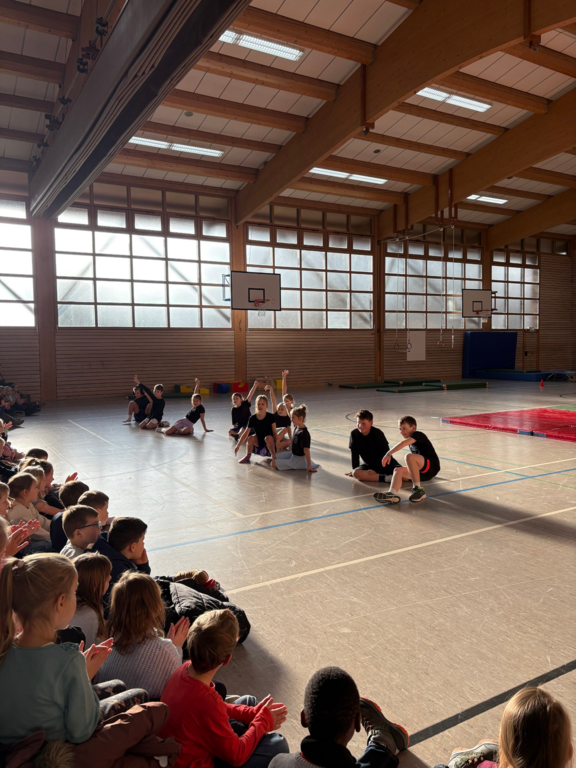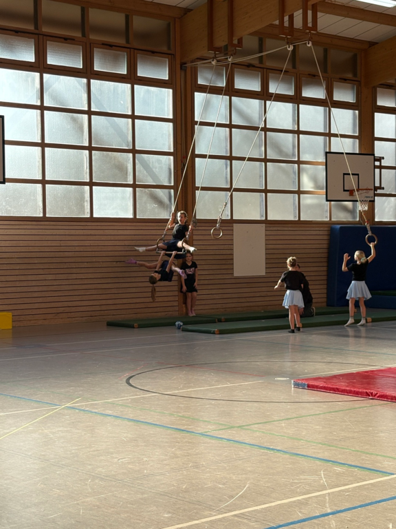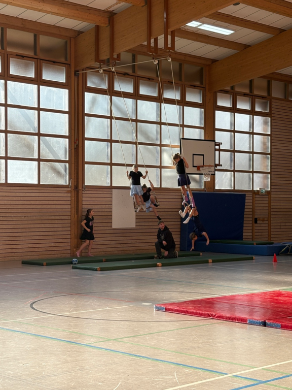 Die Schülerinnen und Schüler tauchten kreativ in die Welt der Zirkusdisziplinen ein: Sie probierten Akrobatik und Kunststücke aus, entwickelten eigene Choreographien und gaben ihrem Ensemble den originellen Namen „Zirkus Punchinello“. Von der Musikauswahl bis zu den Gruppennamen – alles entstand in Eigenregie. Dabei stand nicht nur die körperliche Leistung im Vordergrund, sondern auch die Förderung sozialer Kompetenzen: Zusammenarbeit, Vertrauen und gegenseitige Unterstützung waren die Grundpfeiler des Projekts.