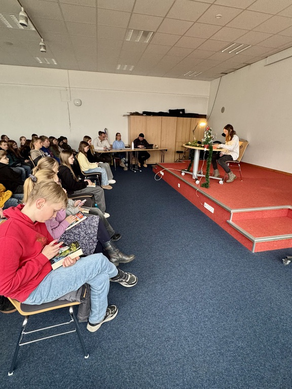 Die Schule war zuvor im Losverfahren für die Teilnahme an der Lesereise ausgewählt worden. Christian Linker las aus seinem Jugendthriller „Y-Game – Sie stecken alle mit drin“. Das Buch greift hochaktuelle Themen wie Gaming, Fake News und Verschwörungstheorien auf und regte die Jugendlichen dazu an, über den Einfluss digitaler Medien auf ihr Denken und Handeln nachzudenken.