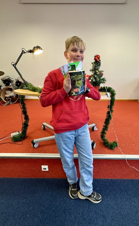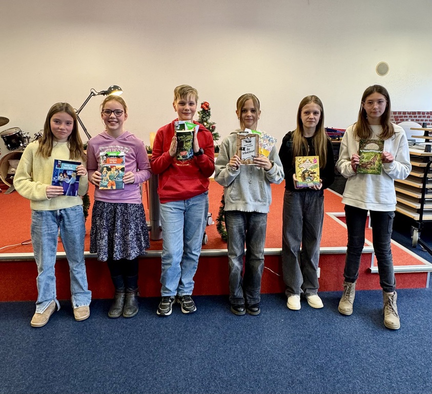 In der Schulaula traten die besten Vorleserinnen und Vorleser der sechsten Klassen gegeneinander an. In der ersten Runde präsentierten sie Texte aus ihren Lieblingsbüchern – darunter Werke von Rick Riordan, Kirsten Vogel und Robert Louis Stevenson. In der zweiten Runde mussten die jungen Talente einen unbekannten Text meistern: Fachbereichsleiter Johannes Höke hatte dafür einen Ausschnitt aus „Weihnachten auf der Lindwurmfeste“ von Walter Moers ausgewählt.