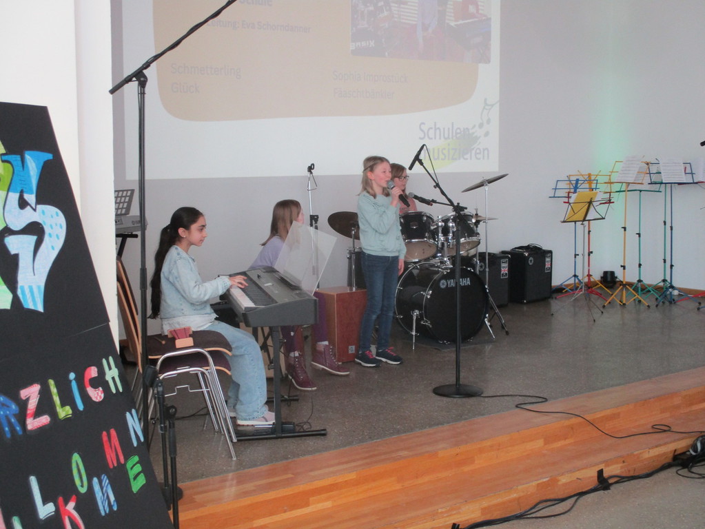 Moderiert wurde das Konzert gekonnt und informativ von Schülerinnen der Musical AG aus der 3. Klasse, Medina Sevic, Dania Schell und Merle Grupe und aus der Klasse 9 Janine Gelber und Melodie Schiedeck. Für den guten Ton der Technik zeigte sich Kerstin Ritter verantwortlich.