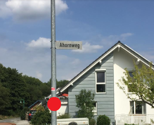 Die nächste Station (Ahornweg) befindet sich etwa 350m entfernt. Du läufst nach Nordosten.